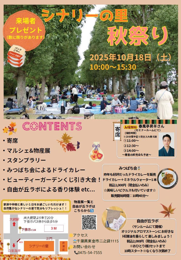 10月18日土曜日は「シナリーの里秋祭り」が開催されます。