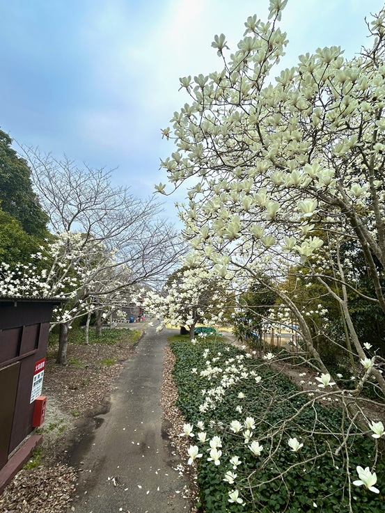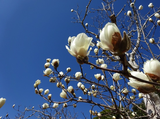 写真:もくれん通りのハクモクレン(3月上旬頃)