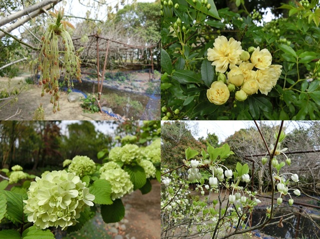 オオデマリ、モッコウバラ、ドウダンツツジと